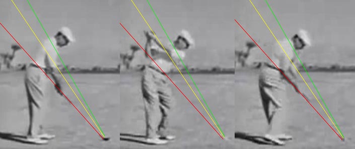The point of all this . . . Hogan did whatever he needed to do to create the desired ball flight . . . but one thing you can see pretty consistently in Hogan is lots of #3 angle and a club that swings IN and ON PLANE quickly after low point . . . I think that is a BIG piece of the "Secret." |