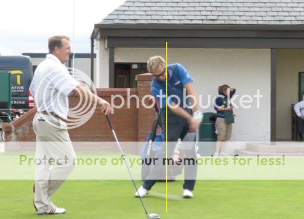 I noticed that on Bobby Clampett's actual drive his head swayed back even more. Not an unusual thing for a good player by any means but not necessary to my mind. I wondered if it was a compensation which moved his Left Shoulder back and gave him more time to Release. If thats what it is then you have to wonder if he could accomplish much the same thing without the Sway by just teeing the ball more forward in his stance. Dont get me wrong Id love to have Bobby's swing.