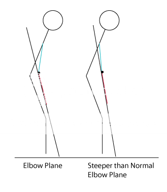 10-6-A. ELBOW The location of the Elbow during Impact is the reference point used for this Plane Angle. This alignment not only allows the Right Forearm to move On Plane through the Impact but also allows the torso to be postioned at righ angles to the Plane --which are the unexcelled alignments for Right Arm Power and Control.
