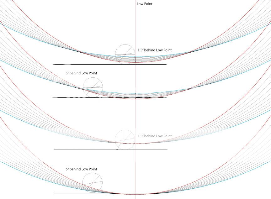 I adjusted the COG Orbits to Intersect at Low Point in the Lower 2 Illustrations and depict one Ball Location behind Low Point and the other about 5 inches behind Low Point.