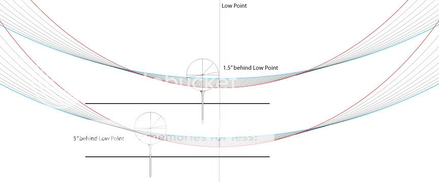 The Top set of Orbits depict the ball positioned slightly behind Low-Point and the Bottom set of Orbits depict the ball positioned about 5" aft of Low Point.